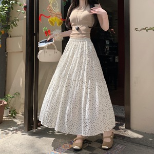 Falda hasta el suelo de chifón Floral de cintura alta de estilo dulce para mujer, accesorio de verano transpirable ajustable en forma de A coreano